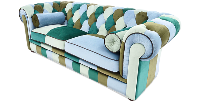 Uniek zitmeubel in blauwe tinten