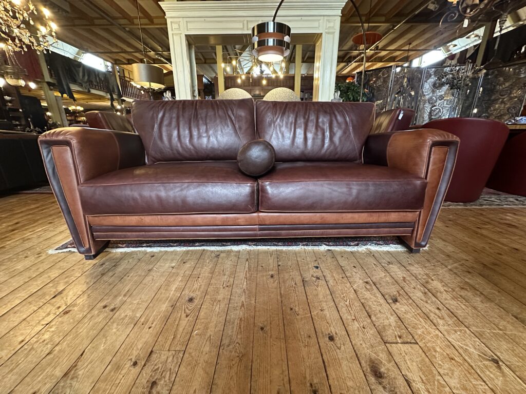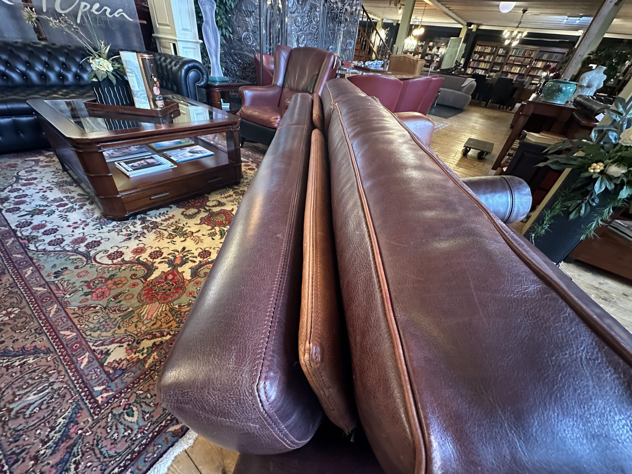 Deze prachtige handgemaakte bank van het gerenommeerde Nederlandse merk Mol & Geurts is een toonbeeld van vakmanschap en tijdloze elegantie. De bank is uitgevoerd in robuust en hoogwaardig Neckleder, bekend om zijn dikte, duurzaamheid en natuurlijke uitstraling. Het ontwerp is geïnspireerd op de Art Deco stijl, wat duidelijk terug te zien is in de karakteristieke, strak vormgegeven armleuningen en het verfijnde lijnenspel. De warme bruintinten van het leer geven de bank een doorleefd maar luxueus karakter dat in zowel klassieke als moderne interieurs tot zijn recht komt. Specificaties: Merk: Mol & Geurts Stijl: Art Deco / Kasteelbank Materiaal: Hoogwaardig Neckleder op een massief beukenhouten frame Kleur: Warm kastanjebruin Conditie: In zeer goede staat, met een prachtig natuurlijk patina dat hoort bij dit type kwaliteitsleder.