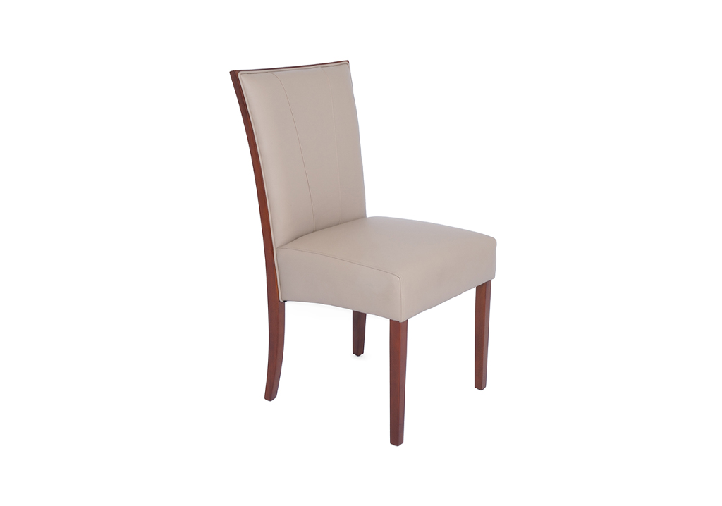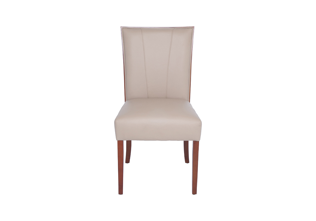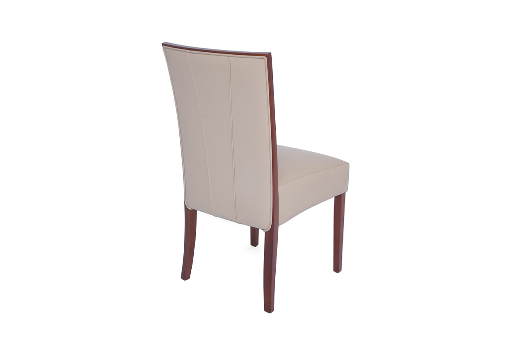 Deze comfortabele eetkamerstoel is verkrijgbaar in leder en stof.